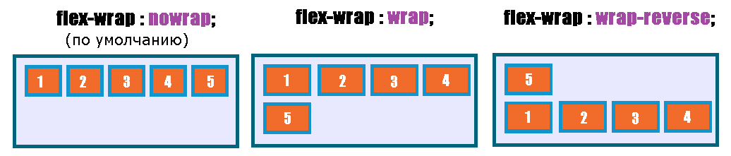 определяет, будет ли флекс контейнер однострочным, или многострочным. По умолчанию контейнер является однострочным, для многострочных контейнеров допускается контролировать направление, в котором размещаются флекс элементы.